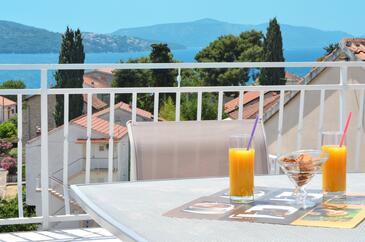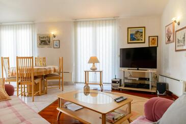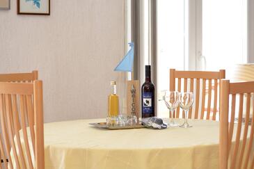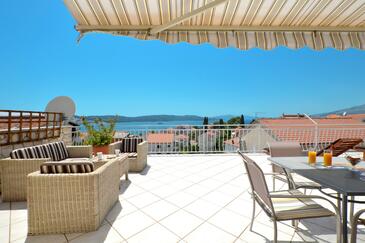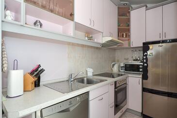 Ferienwohnung bietet Platz für 4 Gäste. Die Betten sind in Schlafzimmern, die es 2 gibt, innerhalb einer Gesamtfläche von 72m2, angeordnet. Die Gäste haben eine eigene Terrasse zur Verfügung, auf der sie in warmen Sommernächten genießen können. Das Apartment bietet Meerblick. Es ist erlaubt, Speisen auf dem Gemeinschafts-Grill vorzubereiten.
