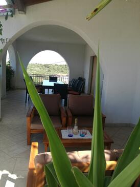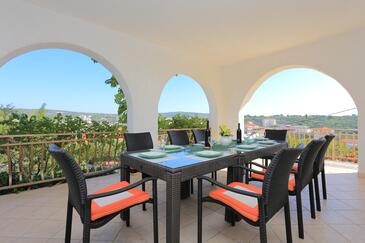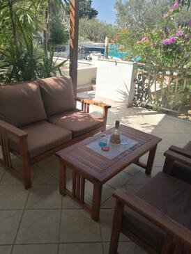 Ferienwohnung bietet Platz für 8 Gäste. Die Betten sind in Schlafzimmern, die es 3 gibt, und in Wohnzimmer, innerhalb einer Gesamtfläche von 73m2, angeordnet. Die Gäste haben eine eigene Terrasse zur Verfügung, auf der sie in warmen Sommernächten genießen können. Das Apartment bietet Meerblick. Es ist erlaubt, Speisen auf dem Gemeinschafts-Grill vorzubereiten. Während ihres Aufenthalts können Gäste das gemeinsam zur Nutzung stehende Schwimmbad benutzen.