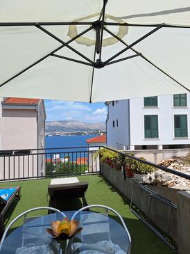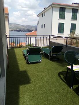 Ferienwohnung bietet Platz für 4 Gäste. Die Betten sind in Schlafzimmern, die es 2 gibt, innerhalb einer Gesamtfläche von 56m2, angeordnet. Die Gäste haben eine eigene Terrasse zur Verfügung, auf der sie in warmen Sommernächten genießen können. Das Apartment bietet Meerblick. Es ist erlaubt, Speisen auf dem Gemeinschafts-Grill vorzubereiten.