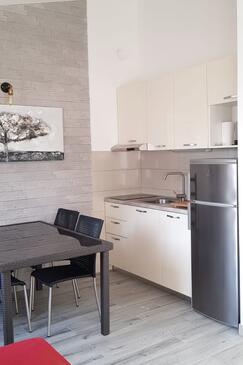 Ferienwohnung bietet Platz für 4 Gäste. Die Betten sind in Schlafzimmern, die es 1 gibt, und in Wohnzimmer, innerhalb einer Gesamtfläche von 30m2, angeordnet. Die Gäste haben eine eigene Terrasse zur Verfügung, auf der sie in warmen Sommernächten genießen können. Das Apartment bietet Meerblick. Es ist erlaubt, Speisen auf dem Gemeinschafts-Grill vorzubereiten.