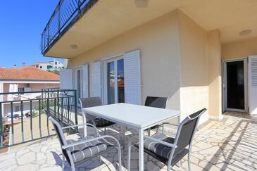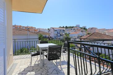 Ferienwohnung bietet Platz für 4 Gäste. Die Betten sind in Schlafzimmern, die es 2 gibt, innerhalb einer Gesamtfläche von 57m2, angeordnet. Die Gäste haben eine eigene Terrasse zur Verfügung, auf der sie in warmen Sommernächten genießen können. Das Apartment bietet Meerblick. Es ist erlaubt, Speisen auf dem Gemeinschafts-Grill vorzubereiten.