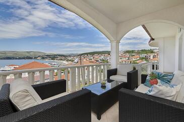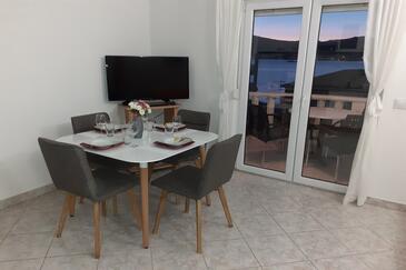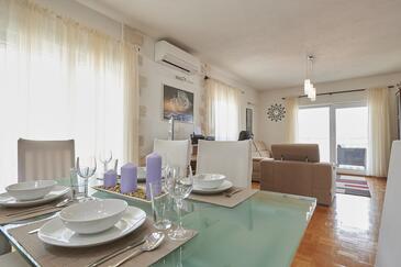 Ferienwohnung bietet Platz für 5 Gäste. Die Betten sind in Schlafzimmern, die es 2 gibt, und in Wohnzimmer, innerhalb einer Gesamtfläche von 43m2, angeordnet. Die Gäste haben eine eigene Terrasse zur Verfügung, auf der sie in warmen Sommernächten genießen können. Das Apartment bietet Meerblick. Es ist erlaubt, Speisen auf dem Gemeinschafts-Grill vorzubereiten.