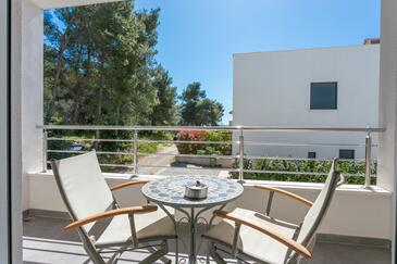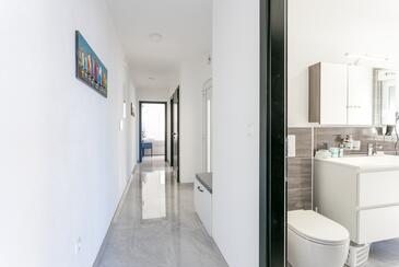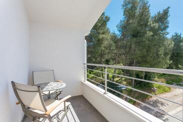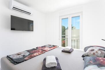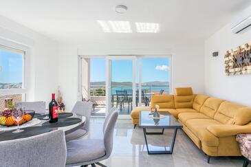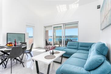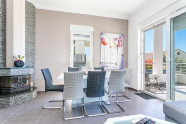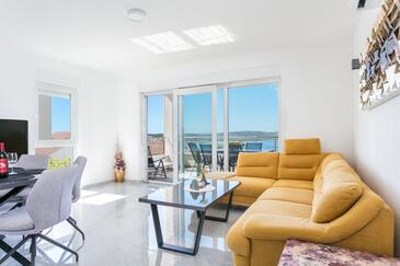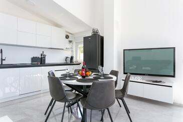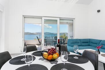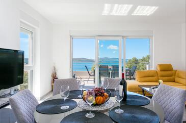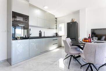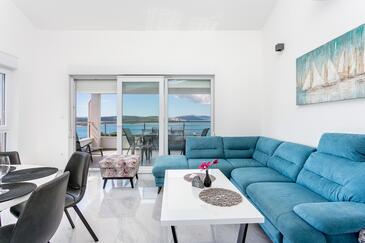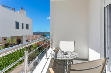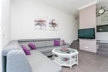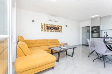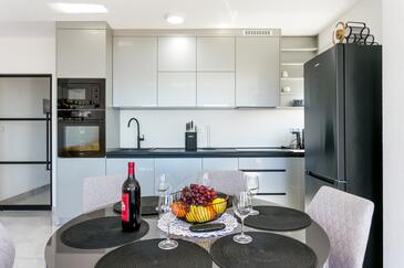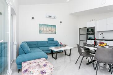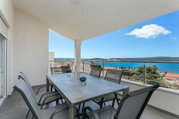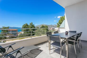 Ferienwohnung bietet Platz für 8 Gäste. Die Betten sind in Schlafzimmern, die es 3 gibt, und in Wohnzimmer, innerhalb einer Gesamtfläche von 99m2, angeordnet. Die Gäste haben eine eigene Terrasse zur Verfügung, auf der sie in warmen Sommernächten genießen können. Das Apartment bietet Meerblick. Während ihres Aufenthalts können Gäste das gemeinsam zur Nutzung stehende Schwimmbad benutzen.