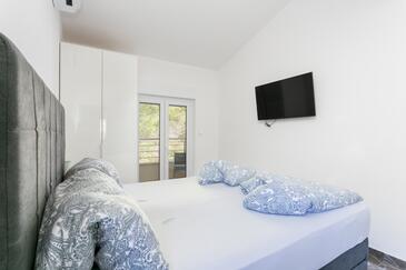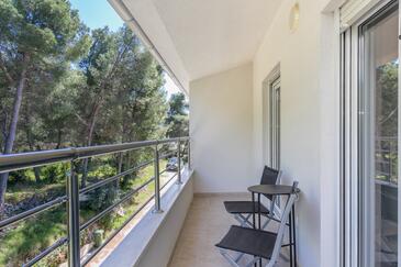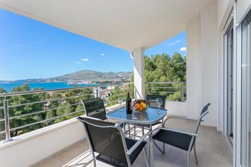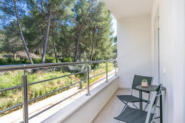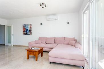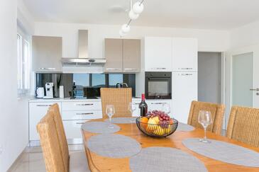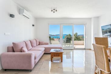 Ferienwohnung bietet Platz für 6 Gäste. Die Betten sind in Schlafzimmern, die es 2 gibt, und in Wohnzimmer, innerhalb einer Gesamtfläche von 89m2, angeordnet. Die Gäste haben eine eigene Terrasse zur Verfügung, auf der sie in warmen Sommernächten genießen können. Das Apartment bietet Meerblick. Während ihres Aufenthalts können Gäste das gemeinsam zur Nutzung stehende Schwimmbad benutzen.