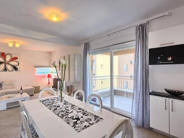 Ferienwohnung bietet Platz für 6 Gäste. Die Betten sind in Schlafzimmern, die es 3 gibt, innerhalb einer Gesamtfläche von 75m2, angeordnet. Die Gäste haben eine eigene Terrasse zur Verfügung, auf der sie in warmen Sommernächten genießen können. Das Apartment bietet Meerblick. Es ist erlaubt, Speisen auf dem Gemeinschafts-Grill vorzubereiten. Während ihres Aufenthalts können Gäste das gemeinsam zur Nutzung stehende Schwimmbad benutzen.