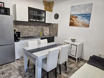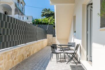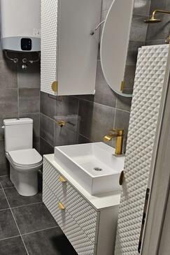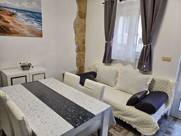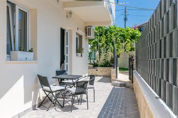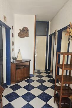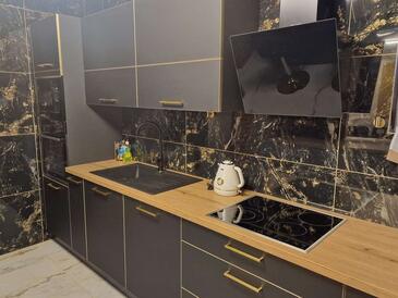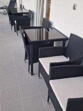 Ferienwohnung bietet Platz für 8 Gäste. Die Betten sind in Schlafzimmern, die es 4 gibt, innerhalb einer Gesamtfläche von 110m2, angeordnet. Die Gäste haben einen eigenen Balkon zur Verfügung, auf der sie in warmen Sommernächten genießen können. Das Apartment bietet Meerblick. Es ist erlaubt, Speisen auf dem Gemeinschafts-Grill vorzubereiten. In der Unterkunftseinheit besteht die Möglichkeit des Mitbringens von Haustieren, und die Dienstleistung ist im Preis der Unterkunft enthalten.