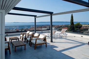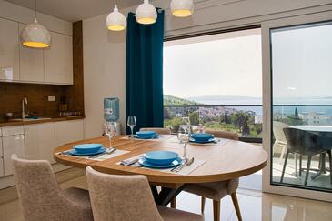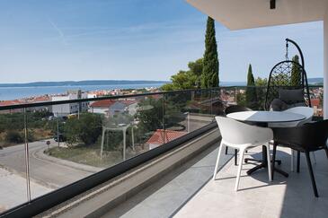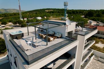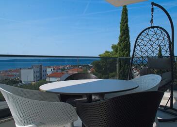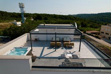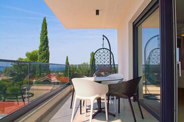Ferienwohnung bietet Platz für 5 Gäste. Die Betten sind in Schlafzimmern, die es 2 gibt, und in Wohnzimmer, innerhalb einer Gesamtfläche von 58m2, angeordnet. Die Gäste haben eine eigene Terrasse zur Verfügung, auf der sie in warmen Sommernächten genießen können. Das Apartment bietet Meerblick. Für vollen Genuss und Entspannung gibt es einen privaten Grill für Gäste dieser Unterkunft. Während ihres Aufenthalts können Gäste das gemeinsam zur Nutzung stehende Schwimmbad benutzen.