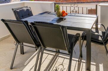 Ferienwohnung bietet Platz für 5 Gäste. Die Betten sind in Schlafzimmern, die es 2 gibt, und in Wohnzimmer, innerhalb einer Gesamtfläche von 75m2, angeordnet. Die Gäste haben einen eigenen Balkon zur Verfügung, auf der sie in warmen Sommernächten genießen können. Es ist erlaubt, Speisen auf dem Gemeinschafts-Grill vorzubereiten.