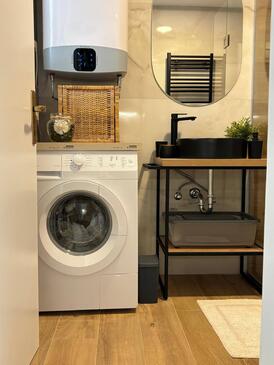 Haus bietet Platz für 8 Gäste. Die Betten sind in Schlafzimmern, die es 2 gibt, und in Wohnzimmer, innerhalb einer Gesamtfläche von 100m2, angeordnet. Die Gäste haben einen eigenen Balkon zur Verfügung, auf der sie in warmen Sommernächten genießen können. Das Haus bietet Meerblick. Für vollen Genuss und Entspannung gibt es einen privaten Grill für Gäste dieser Unterkunft.
