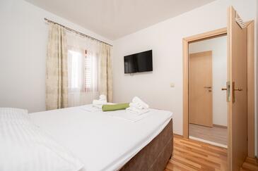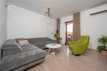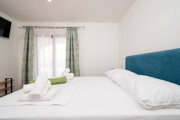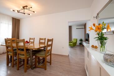 Ferienwohnung bietet Platz für 5 Gäste. Die Betten sind in Schlafzimmern, die es 2 gibt, und in Wohnzimmer, innerhalb einer Gesamtfläche von 90m2, angeordnet. Die Gäste haben eine eigene Terrasse zur Verfügung, auf der sie in warmen Sommernächten genießen können. Das Apartment bietet Meerblick.