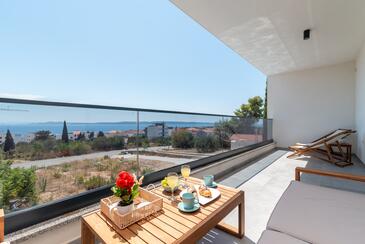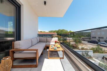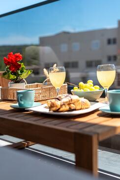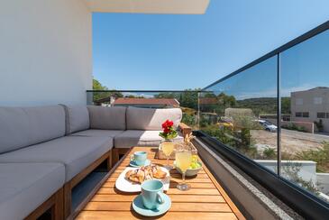 Ferienwohnung bietet Platz für 4 Gäste. Die Betten sind in Schlafzimmern, die es 2 gibt, innerhalb einer Gesamtfläche von 56m2, angeordnet. Die Gäste haben einen eigenen Balkon zur Verfügung, auf der sie in warmen Sommernächten genießen können. Das Apartment bietet Meerblick. Während ihres Aufenthalts können Gäste das gemeinsam zur Nutzung stehende Schwimmbad benutzen.