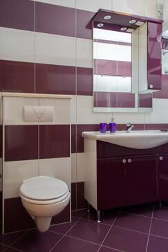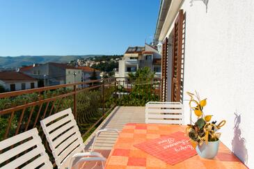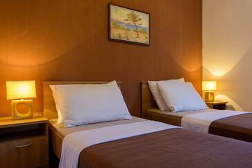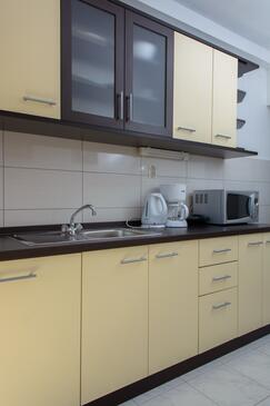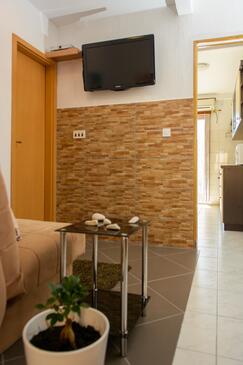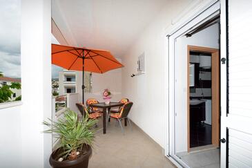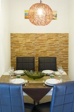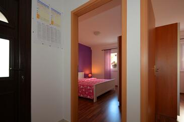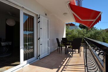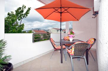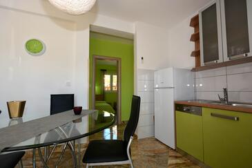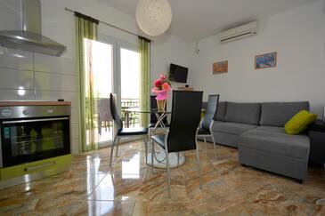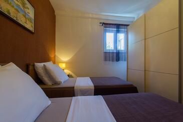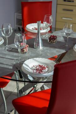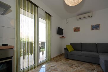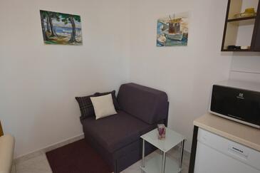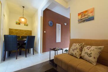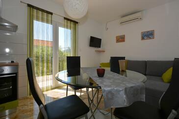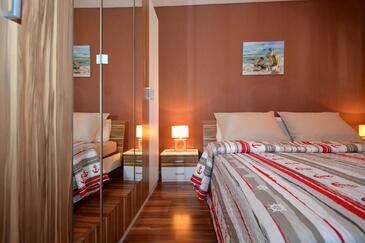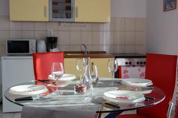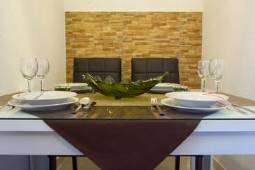 Ferienwohnung bietet Platz für 5 Gäste. Die Betten sind in Schlafzimmern, die es 2 gibt, und in Esszimmer, innerhalb einer Gesamtfläche von 58m2, angeordnet. Die Gäste haben eine eigene Terrasse zur Verfügung, auf der sie in warmen Sommernächten genießen können. Es ist erlaubt, Speisen auf dem Gemeinschafts-Grill vorzubereiten.
