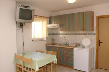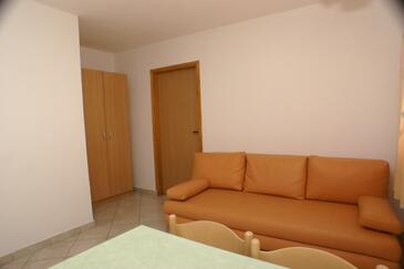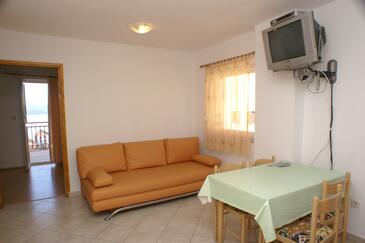 Ferienwohnung bietet Platz für 4 Gäste. Die Betten sind in Schlafzimmern, die es 1 gibt, und in Esszimmer, innerhalb einer Gesamtfläche von 30m2, angeordnet. Die Gäste haben eine eigene Terrasse zur Verfügung, auf der sie in warmen Sommernächten genießen können. Das Apartment bietet Meerblick. Es ist erlaubt, Speisen auf dem Gemeinschafts-Grill vorzubereiten.