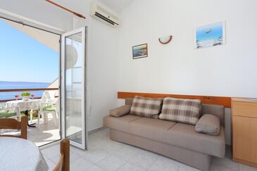 Ferienwohnung bietet Platz für 4 Gäste. Die Betten sind in Schlafzimmern, die es 1 gibt, und in Wohnzimmer, innerhalb einer Gesamtfläche von 28m2, angeordnet. Die Gäste haben eine eigene Terrasse zur Verfügung, auf der sie in warmen Sommernächten genießen können. Das Apartment bietet Meerblick. Es ist erlaubt, Speisen auf dem Gemeinschafts-Grill vorzubereiten.