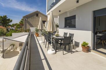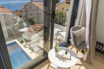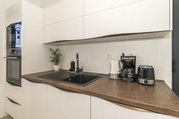 Ferienwohnung bietet Platz für 4 Gäste. Die Betten sind in Schlafzimmern, die es 2 gibt, innerhalb einer Gesamtfläche von 76m2, angeordnet. Die Gäste haben eine eigene Terrasse zur Verfügung, auf der sie in warmen Sommernächten genießen können. Das Apartment bietet Meerblick. Für vollen Genuss und Entspannung gibt es einen privaten Grill für Gäste dieser Unterkunft. Während ihres Aufenthalts können Gäste das gemeinsam zur Nutzung stehende Schwimmbad benutzen.