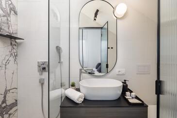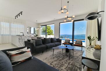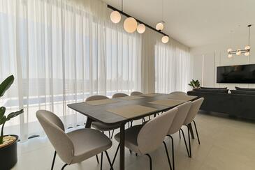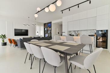 Haus bietet Platz für 10 Gäste. Die Betten sind in Schlafzimmern, die es 5 gibt, innerhalb einer Gesamtfläche von 230m2, angeordnet. Die Gäste haben eine eigene Terrasse zur Verfügung, auf der sie in warmen Sommernächten genießen können. Das Haus bietet Meerblick. Für vollen Genuss und Entspannung gibt es einen privaten Grill für Gäste dieser Unterkunft. Während ihres Aufenthalts können sich Gäste im privaten Schwimmbad entspannen. In der Unterkunftseinheit besteht die Möglichkeit des Mitbringens von Haustieren gegen Aufpreis.
