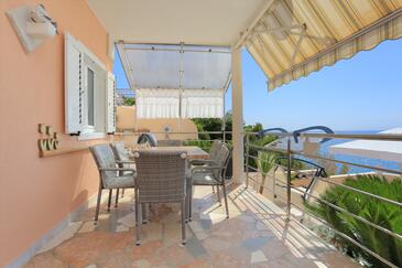 Ferienwohnung bietet Platz für 6 Gäste. Die Betten sind in Schlafzimmern, die es 2 gibt, und in Wohnzimmer, innerhalb einer Gesamtfläche von 49m2, angeordnet. Die Gäste haben eine eigene Terrasse zur Verfügung, auf der sie in warmen Sommernächten genießen können. Das Apartment bietet Meerblick. Es ist erlaubt, Speisen auf dem Gemeinschafts-Grill vorzubereiten. Unterkunftseinheit hat Räume, die von dem Rest der Einheit abgetrennt werden.