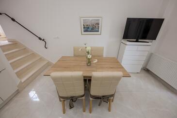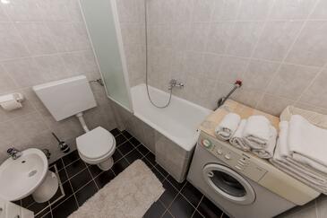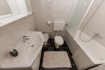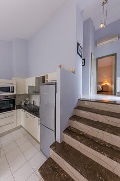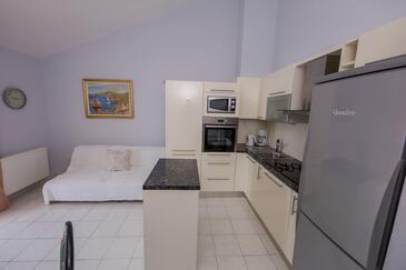 Ferienwohnung bietet Platz für 4 Gäste. Die Betten sind in Schlafzimmern, die es 2 gibt, innerhalb einer Gesamtfläche von 42m2, angeordnet. Die Gäste haben eine eigene Terrasse zur Verfügung, auf der sie in warmen Sommernächten genießen können. Das Apartment bietet Meerblick. Es ist erlaubt, Speisen auf dem Gemeinschafts-Grill vorzubereiten.