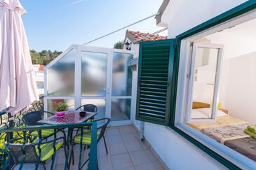 Ferienwohnung bietet Platz für 4 Gäste. Die Betten sind in Schlafzimmern, die es 2 gibt, innerhalb einer Gesamtfläche von 41m2, angeordnet. Die Gäste haben eine eigene Terrasse zur Verfügung, auf der sie in warmen Sommernächten genießen können. Das Apartment bietet Meerblick. Es ist erlaubt, Speisen auf dem Gemeinschafts-Grill vorzubereiten. In der Unterkunftseinheit besteht die Möglichkeit des Mitbringens von Haustieren gegen Aufpreis.