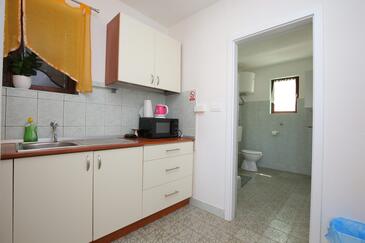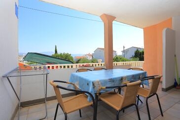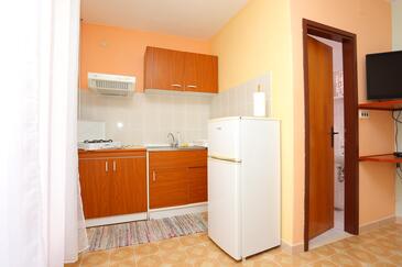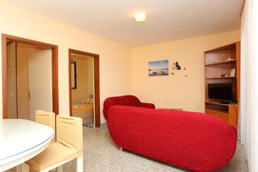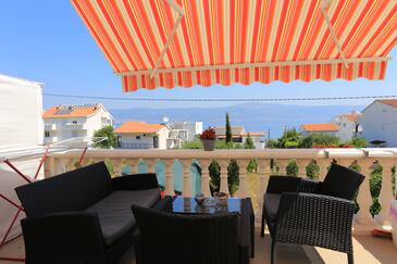 Ferienwohnung bietet Platz für 4 Gäste. Die Betten sind in Schlafzimmern, die es 2 gibt, innerhalb einer Gesamtfläche von 42m2, angeordnet. Die Gäste haben eine eigene Terrasse zur Verfügung, auf der sie in warmen Sommernächten genießen können. Das Apartment bietet Meerblick. Es ist erlaubt, Speisen auf dem Gemeinschafts-Grill vorzubereiten. In der Unterkunftseinheit besteht die Möglichkeit des Mitbringens von Haustieren gegen Aufpreis.