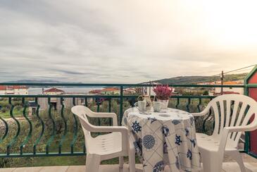 Ferienwohnung bietet Platz für 4 Gäste. Die Betten sind in Schlafzimmern, die es 2 gibt, innerhalb einer Gesamtfläche von 45m2, angeordnet. Die Gäste haben eine eigene Terrasse zur Verfügung, auf der sie in warmen Sommernächten genießen können. Das Apartment bietet Meerblick. Es ist erlaubt, Speisen auf dem Gemeinschafts-Grill vorzubereiten.