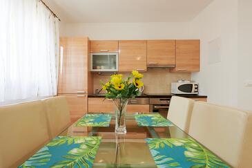 Ferienwohnung bietet Platz für 4 Gäste. Die Betten sind in Schlafzimmern, die es 2 gibt, innerhalb einer Gesamtfläche von 44m2, angeordnet. Die Gäste haben eine eigene Terrasse zur Verfügung, auf der sie in warmen Sommernächten genießen können. Das Apartment bietet Meerblick. Es ist erlaubt, Speisen auf dem Gemeinschafts-Grill vorzubereiten. Während ihres Aufenthalts können Gäste das gemeinsam zur Nutzung stehende Schwimmbad benutzen. In der gebuchten Unterkunftseinheit zahlt man am Ort ein Depositum ( der Preis ist an der Internetseite angeführt ).