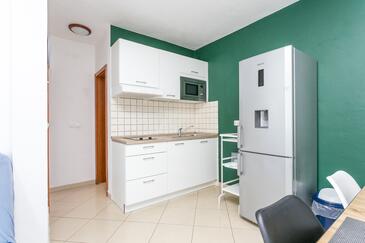 Ferienwohnung bietet Platz für 3 Gäste. Die Betten sind in Schlafzimmern, die es 1 gibt, und in Wohnzimmer, innerhalb einer Gesamtfläche von 31m2, angeordnet. Die Gäste haben eine eigene Terrasse zur Verfügung, auf der sie in warmen Sommernächten genießen können. Das Apartment bietet Meerblick. Es ist erlaubt, Speisen auf dem Gemeinschafts-Grill vorzubereiten.