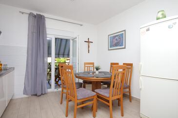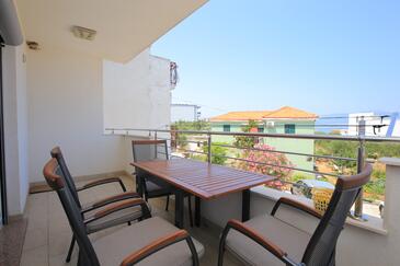 Ferienwohnung bietet Platz für 8 Gäste. Die Betten sind in Schlafzimmern, die es 3 gibt, und in Wohnzimmer, innerhalb einer Gesamtfläche von 66m2, angeordnet. Die Gäste haben einen eigenen Balkon zur Verfügung, auf der sie in warmen Sommernächten genießen können. Das Apartment bietet Meerblick. Es ist erlaubt, Speisen auf dem Gemeinschafts-Grill vorzubereiten. In der Unterkunftseinheit besteht die Möglichkeit des Mitbringens von Haustieren gegen Aufpreis.