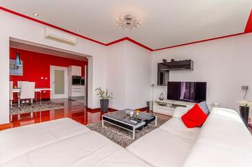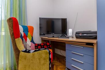 Ferienwohnung bietet Platz für 6 Gäste. Die Betten sind in Schlafzimmern, die es 3 gibt, und in Wohnzimmer, innerhalb einer Gesamtfläche von 113m2, angeordnet. Die Gäste haben eine eigene Terrasse zur Verfügung, auf der sie in warmen Sommernächten genießen können. Das Apartment bietet Meerblick. Es ist erlaubt, Speisen auf dem Gemeinschafts-Grill vorzubereiten.