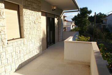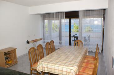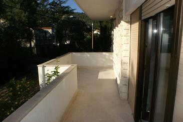 Ferienwohnung bietet Platz für 8 Gäste. Die Betten sind in Schlafzimmern, die es 4 gibt, innerhalb einer Gesamtfläche von 101m2, angeordnet. Die Gäste haben eine eigene Terrasse zur Verfügung, auf der sie in warmen Sommernächten genießen können. Das Apartment bietet Meerblick. Es ist erlaubt, Speisen auf dem Gemeinschafts-Grill vorzubereiten. In der gebuchten Unterkunftseinheit zahlt man am Ort ein Depositum ( der Preis ist an der Internetseite angeführt ).
