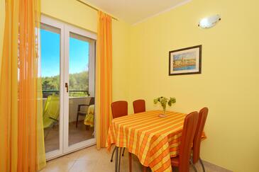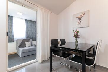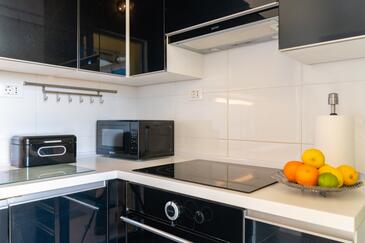 Ferienwohnung bietet Platz für 5 Gäste. Die Betten sind in Schlafzimmern, die es 2 gibt, und in Wohnzimmer, innerhalb einer Gesamtfläche von 43m2, angeordnet. Die Gäste haben eine eigene Terrasse zur Verfügung, auf der sie in warmen Sommernächten genießen können. Das Apartment bietet Meerblick. Es ist erlaubt, Speisen auf dem Gemeinschafts-Grill vorzubereiten.