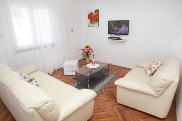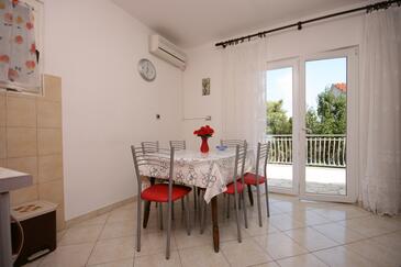 Ferienwohnung bietet Platz für 4 Gäste. Die Betten sind in Schlafzimmern, die es 2 gibt, innerhalb einer Gesamtfläche von 56m2, angeordnet. Die Gäste haben eine eigene Terrasse zur Verfügung, auf der sie in warmen Sommernächten genießen können. Es ist erlaubt, Speisen auf dem Gemeinschafts-Grill vorzubereiten.