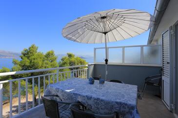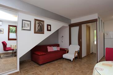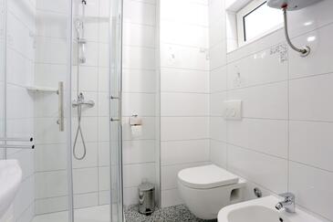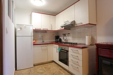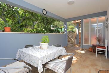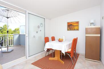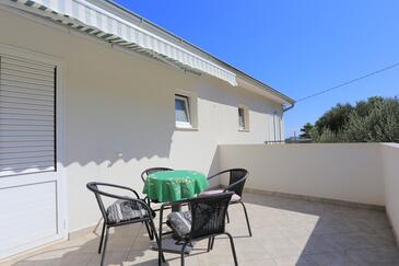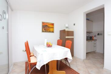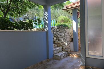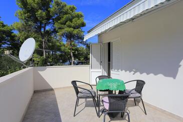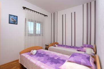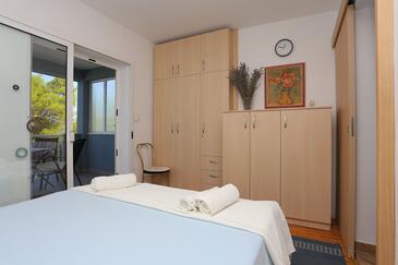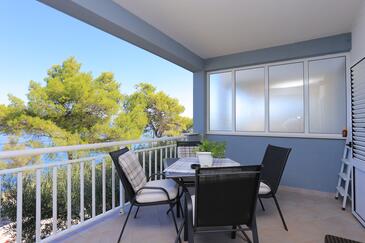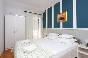 Ferienwohnung bietet Platz für 4 Gäste. Die Betten sind in Schlafzimmern, die es 2 gibt, innerhalb einer Gesamtfläche von 44m2, angeordnet. Die Gäste haben eine eigene Terrasse zur Verfügung, auf der sie in warmen Sommernächten genießen können. Das Apartment bietet Meerblick. Es ist erlaubt, Speisen auf dem Gemeinschafts-Grill vorzubereiten.