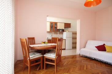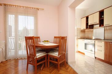 Ferienwohnung bietet Platz für 4 Gäste. Die Betten sind in Schlafzimmern, die es 2 gibt, innerhalb einer Gesamtfläche von 66m2, angeordnet. Die Gäste haben einen eigenen Balkon zur Verfügung, auf der sie in warmen Sommernächten genießen können. Das Apartment bietet Meerblick. Es ist erlaubt, Speisen auf dem Gemeinschafts-Grill vorzubereiten.