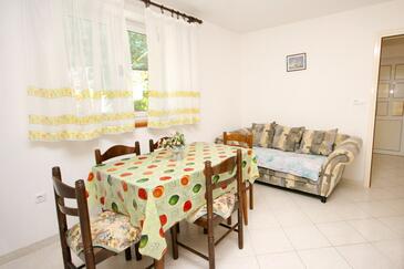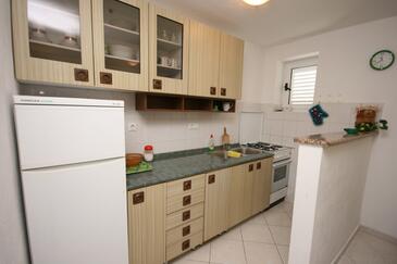 Ferienwohnung bietet Platz für 4 Gäste. Die Betten sind in Schlafzimmern, die es 2 gibt, innerhalb einer Gesamtfläche von 41m2, angeordnet. Die Gäste haben eine eigene Terrasse zur Verfügung, auf der sie in warmen Sommernächten genießen können. Das Apartment bietet Meerblick. Es ist erlaubt, Speisen auf dem Gemeinschafts-Grill vorzubereiten.