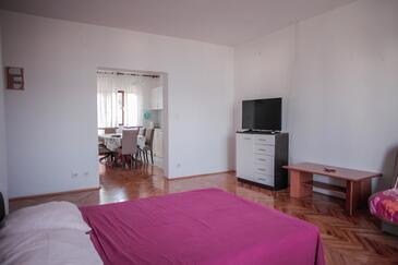 Ferienwohnung bietet Platz für 8 Gäste. Die Betten sind in Schlafzimmern, die es 2 gibt, und in Wohnzimmer, innerhalb einer Gesamtfläche von 83m2, angeordnet. Die Gäste haben eine eigene Terrasse zur Verfügung, auf der sie in warmen Sommernächten genießen können. Es ist erlaubt, Speisen auf dem Gemeinschafts-Grill vorzubereiten. In der Unterkunftseinheit besteht die Möglichkeit des Mitbringens von Haustieren gegen Aufpreis.