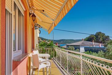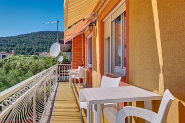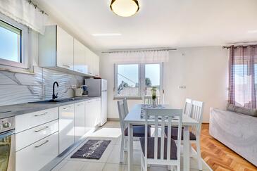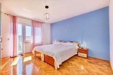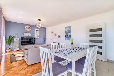 Ferienwohnung bietet Platz für 5 Gäste. Die Betten sind in Schlafzimmern, die es 3 gibt, innerhalb einer Gesamtfläche von 110m2, angeordnet. Die Gäste haben einen eigenen Balkon zur Verfügung, auf der sie in warmen Sommernächten genießen können. Das Apartment bietet Meerblick. Es ist erlaubt, Speisen auf dem Gemeinschafts-Grill vorzubereiten.