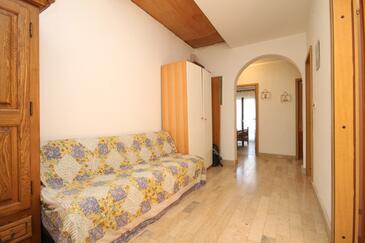 Ferienwohnung bietet Platz für 7 Gäste. Die Betten sind in Schlafzimmern, die es 3 gibt, innerhalb einer Gesamtfläche von 79m2, angeordnet. Die Gäste haben eine eigene Terrasse zur Verfügung, auf der sie in warmen Sommernächten genießen können. Das Apartment bietet Meerblick. Es ist erlaubt, Speisen auf dem Gemeinschafts-Grill vorzubereiten. In der Unterkunftseinheit besteht die Möglichkeit des Mitbringens von Haustieren gegen Aufpreis.