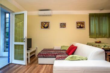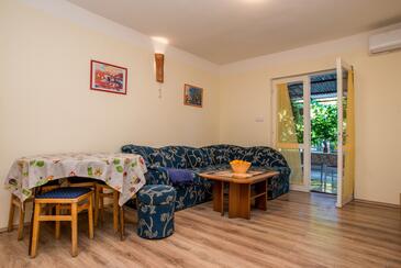 Ferienwohnung bietet Platz für 4 Gäste. Die Betten sind in Schlafzimmern, die es 1 gibt, und in Wohnzimmer, innerhalb einer Gesamtfläche von 43m2, angeordnet. Die Gäste haben eine eigene Terrasse zur Verfügung, auf der sie in warmen Sommernächten genießen können. Es ist erlaubt, Speisen auf dem Gemeinschafts-Grill vorzubereiten. In der Unterkunftseinheit besteht die Möglichkeit des Mitbringens von Haustieren, und die Dienstleistung ist im Preis der Unterkunft enthalten.