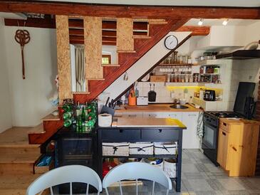 Haus bietet Platz für 5 Gäste. Die Betten sind in Schlafzimmern, die es 3 gibt, innerhalb einer Gesamtfläche von 94m2, angeordnet. Die Gäste haben eine eigene Terrasse zur Verfügung, auf der sie in warmen Sommernächten genießen können. Das Haus bietet Meerblick. Für vollen Genuss und Entspannung gibt es einen privaten Grill für Gäste dieser Unterkunft. In der Unterkunftseinheit besteht die Möglichkeit des Mitbringens von Haustieren, und die Dienstleistung ist im Preis der Unterkunft enthalten.