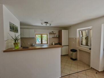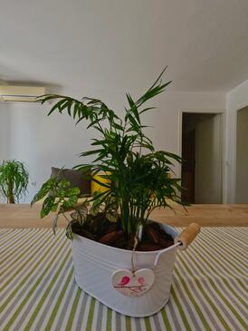 Ferienwohnung bietet Platz für 5 Gäste. Die Betten sind in Schlafzimmern, die es 3 gibt, innerhalb einer Gesamtfläche von 72m2, angeordnet. Die Gäste haben eine eigene Terrasse zur Verfügung, auf der sie in warmen Sommernächten genießen können.
