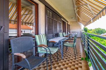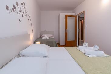 Ferienwohnung bietet Platz für 6 Gäste. Die Betten sind in Schlafzimmern, die es 3 gibt, innerhalb einer Gesamtfläche von 78m2, angeordnet. Die Gäste haben eine eigene Terrasse zur Verfügung, auf der sie in warmen Sommernächten genießen können. Das Apartment bietet Meerblick. Es ist erlaubt, Speisen auf dem Gemeinschafts-Grill vorzubereiten.