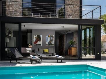 Haus bietet Platz für 7 Gäste. Die Betten sind in Schlafzimmern, die es 3 gibt, innerhalb einer Gesamtfläche von 101m2, angeordnet. Die Gäste haben eine eigene Terrasse zur Verfügung, auf der sie in warmen Sommernächten genießen können. Für vollen Genuss und Entspannung gibt es einen privaten Grill für Gäste dieser Unterkunft. Während ihres Aufenthalts können sich Gäste im privaten Schwimmbad entspannen.
