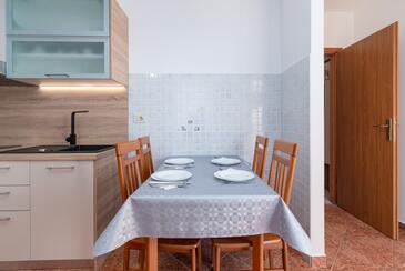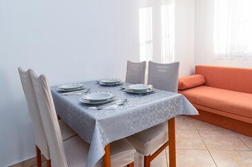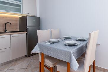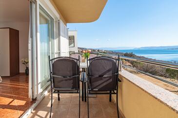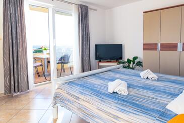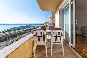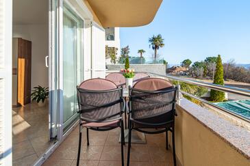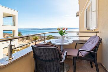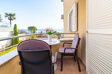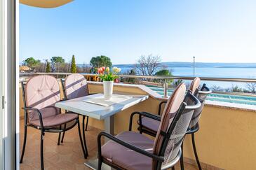 Ferienwohnung bietet Platz für 5 Gäste. Die Betten sind in Schlafzimmern, die es 2 gibt, und in Wohnzimmer, innerhalb einer Gesamtfläche von 68m2, angeordnet. Die Gäste haben einen eigenen Balkon zur Verfügung, auf der sie in warmen Sommernächten genießen können. Das Apartment bietet Meerblick. Es ist erlaubt, Speisen auf dem Gemeinschafts-Grill vorzubereiten. Während ihres Aufenthalts können Gäste das gemeinsam zur Nutzung stehende Schwimmbad benutzen. In der Unterkunftseinheit besteht die Möglichkeit des Mitbringens von Haustieren gegen Aufpreis.