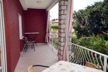 Ferienwohnung bietet Platz für 5 Gäste. Die Betten sind in Schlafzimmern, die es 2 gibt, innerhalb einer Gesamtfläche von 53m2, angeordnet. Die Gäste haben eine eigene Terrasse zur Verfügung, auf der sie in warmen Sommernächten genießen können. Das Apartment bietet Meerblick. Es ist erlaubt, Speisen auf dem Gemeinschafts-Grill vorzubereiten. In der Unterkunftseinheit besteht die Möglichkeit des Mitbringens von Haustieren gegen Aufpreis.