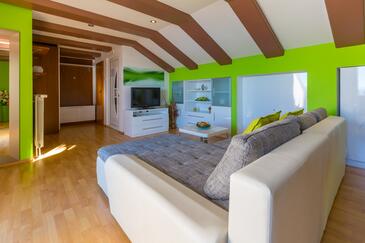 Ferienwohnung bietet Platz für 5 Gäste. Die Betten sind in Schlafzimmern, die es 2 gibt, und in Wohnzimmer, innerhalb einer Gesamtfläche von 72m2, angeordnet. Die Gäste haben eine eigene Terrasse zur Verfügung, auf der sie in warmen Sommernächten genießen können. Das Apartment bietet Meerblick.