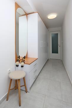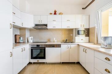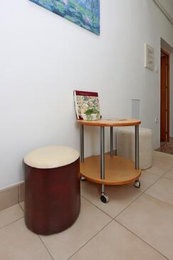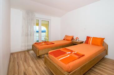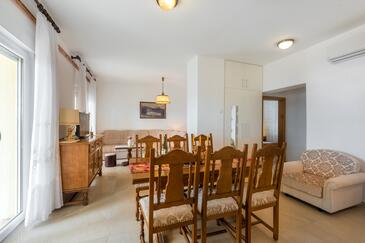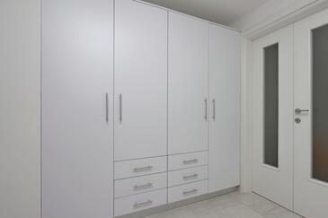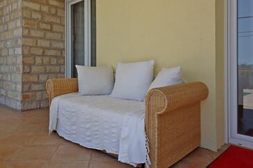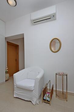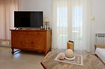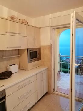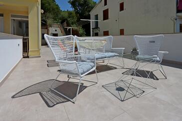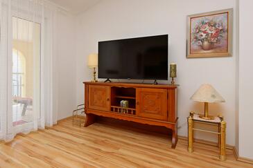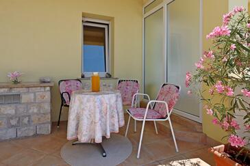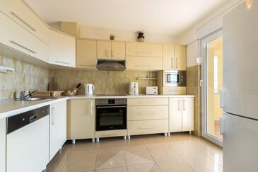 Ferienwohnung bietet Platz für 6 Gäste. Die Betten sind in Schlafzimmern, die es 3 gibt, innerhalb einer Gesamtfläche von 70m2, angeordnet. Die Gäste haben eine eigene Terrasse zur Verfügung, auf der sie in warmen Sommernächten genießen können. Das Apartment bietet Meerblick. Es ist erlaubt, Speisen auf dem Gemeinschafts-Grill vorzubereiten.