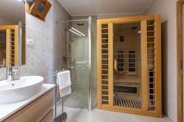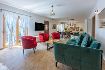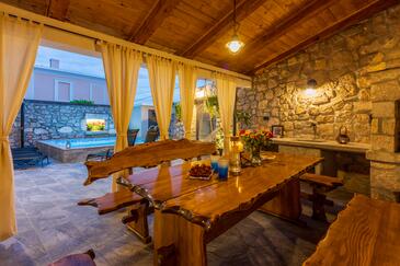 Haus bietet Platz für 6 Gäste. Die Betten sind in Schlafzimmern, die es 3 gibt, innerhalb einer Gesamtfläche von 127m2, angeordnet. Die Gäste haben eine eigene Terrasse zur Verfügung, auf der sie in warmen Sommernächten genießen können. Das Haus bietet Meerblick. Für vollen Genuss und Entspannung gibt es einen privaten Grill für Gäste dieser Unterkunft. Während ihres Aufenthalts können sich Gäste im privaten Schwimmbad entspannen. In der gebuchten Unterkunftseinheit zahlt man am Ort ein Depositum ( der Preis ist an der Internetseite angeführt ).