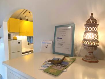 Haus bietet Platz für 4 Gäste. Die Betten sind in Schlafzimmern, die es 1 gibt, und in Wohnzimmer, innerhalb einer Gesamtfläche von 26m2, angeordnet. Die Gäste haben eine eigene Terrasse zur Verfügung, auf der sie in warmen Sommernächten genießen können. Das Haus bietet Meerblick. Es ist erlaubt, Speisen auf dem Gemeinschafts-Grill vorzubereiten. In der Unterkunftseinheit besteht die Möglichkeit des Mitbringens von Haustieren gegen Aufpreis.