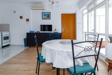Ferienwohnung bietet Platz für 4 Gäste. Die Betten sind in Schlafzimmern, die es 1 gibt, und in Wohnzimmer, innerhalb einer Gesamtfläche von 38m2, angeordnet. Die Gäste haben eine eigene Terrasse zur Verfügung, auf der sie in warmen Sommernächten genießen können. Das Apartment bietet Meerblick.